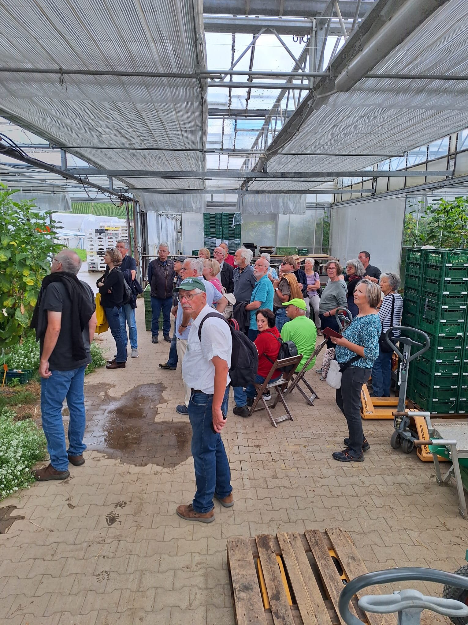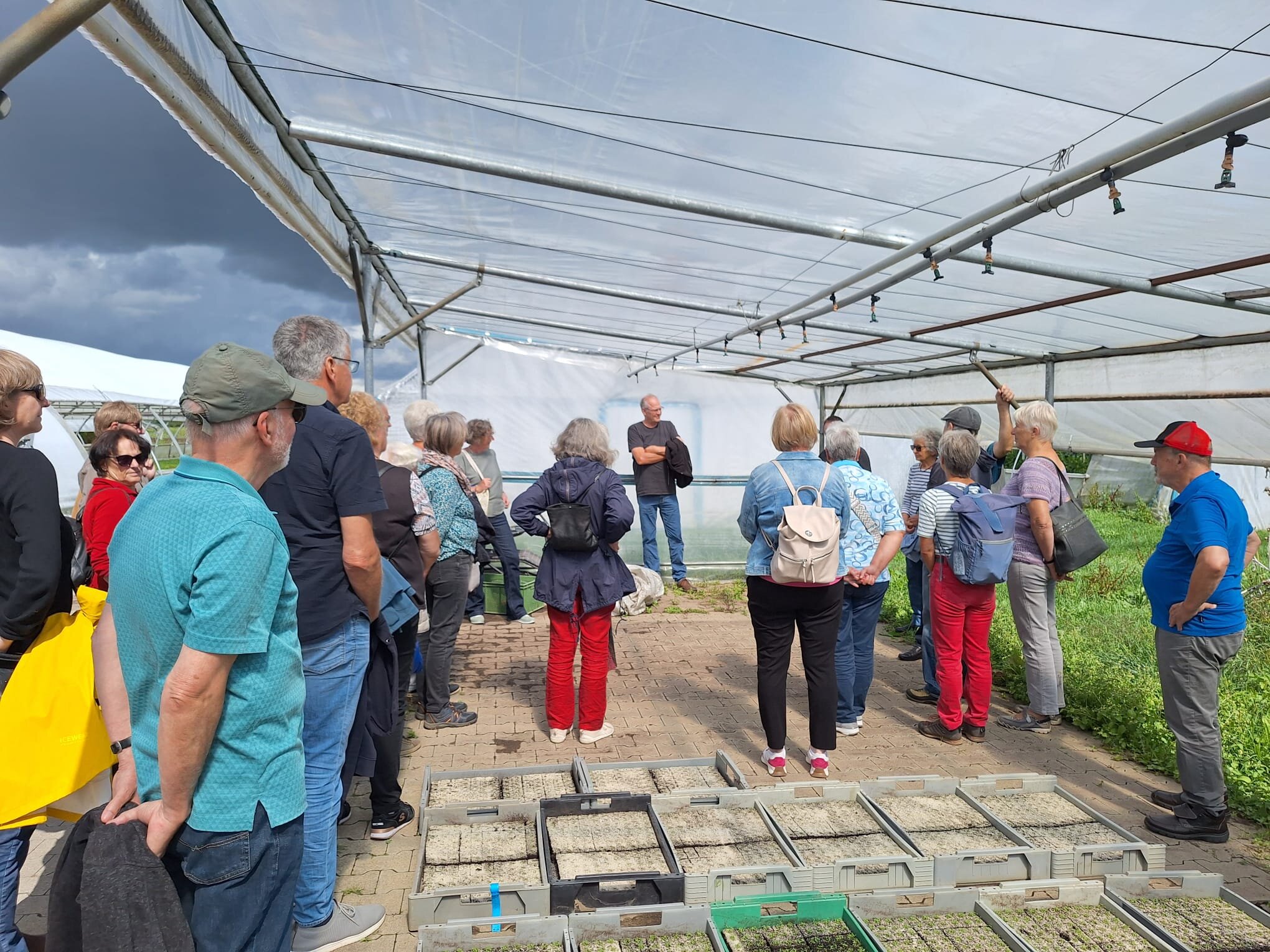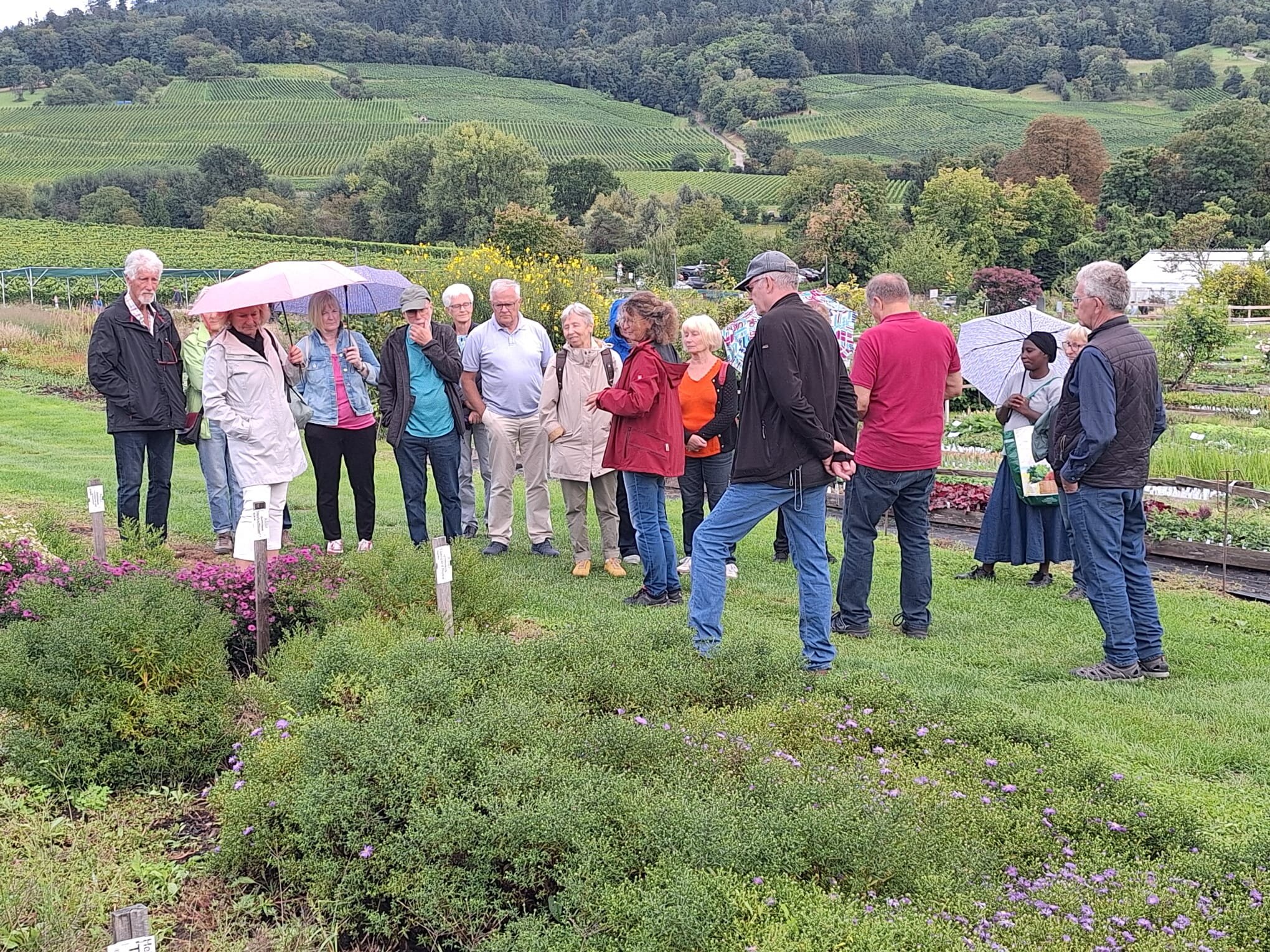 Am 5.9.2025 haben wir im Rahmen unseres Vereinsausflugs die Gärtnerei Piluweri in Hügelheim besucht. Auf ca. 46 ha wird hier die mittelständische Gärtnerei nach DEMETER Richtlinien betrieben . Herr Ritter hat uns in die Geheimnisse des BIO Anbaus eingeführt. Der Anbau wird sowohl im Freiland als auch im Gewächshaus betrieben. 50 Kubikmeter Wasser kann in einer Zisterne aufgefangen werden, dass der Bewässerung der Pflanzen dient. Anschließend haben wir die Staudengärtnerei Gräfin von Zeppelin in Laufen besucht und eine Einführung in die Vielzahl der verschiedenen und hochwertigen Pflanzungen erhalten. Zum Abschluss haben die 54 Teilnehmer des OGV im Weingut Löffler, Staufen die guten Speisen und Getränke genossen.