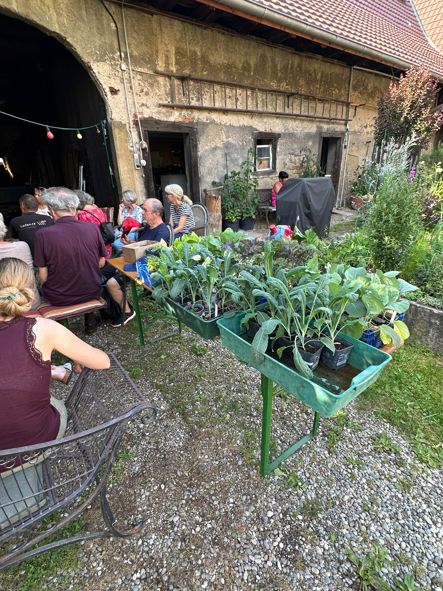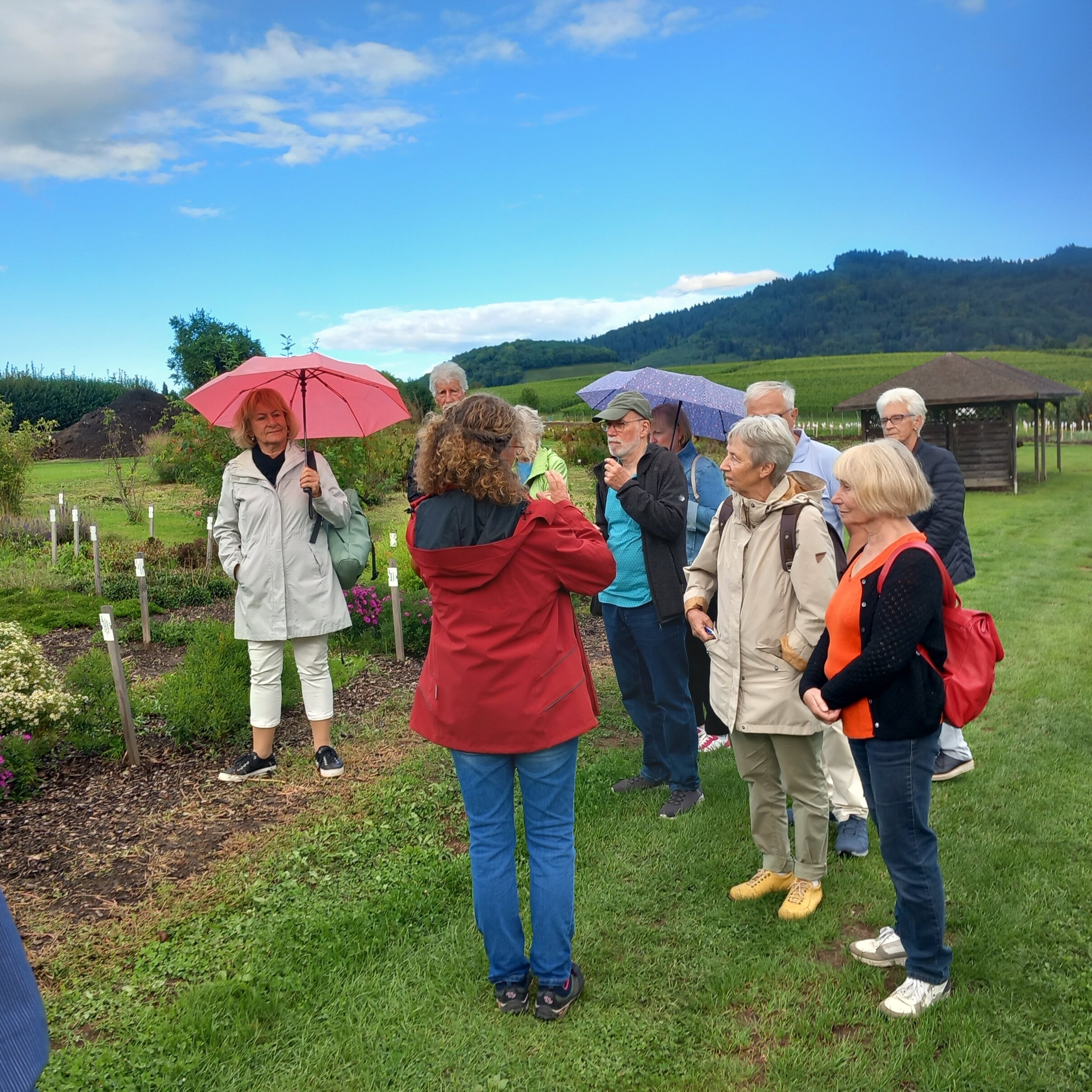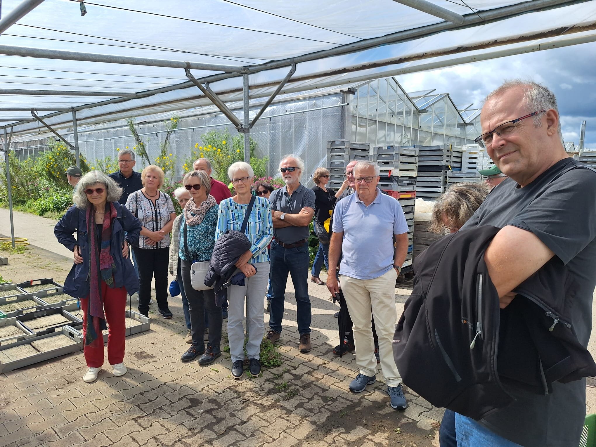 Am 5.9.2025 haben wir im Rahmen unseres Vereinsausflugs die Gärtnerei Piluweri in Hügelheim besucht. Auf ca. 46 ha wird hier die mittelständische Gärtnerei nach DEMETER Richtlinien betrieben . Herr Ritter hat uns in die Geheimnisse des BIO Anbaus eingeführt. Der Anbau wird sowohl im Freiland als auch im Gewächshaus betrieben. 50 Kubikmeter Wasser kann in einer Zisterne aufgefangen werden, dass der Bewässerung der Pflanzen dient. Anschließend haben wir die Staudengärtnerei Gräfin von Zeppelin in Laufen besucht und eine Einführung in die Vielzahl der verschiedenen und hochwertigen Pflanzungen erhalten. Zum Abschluss haben die 54 Teilnehmer des OGV im Weingut Löffler, Staufen die guten Speisen und Getränke genossen.